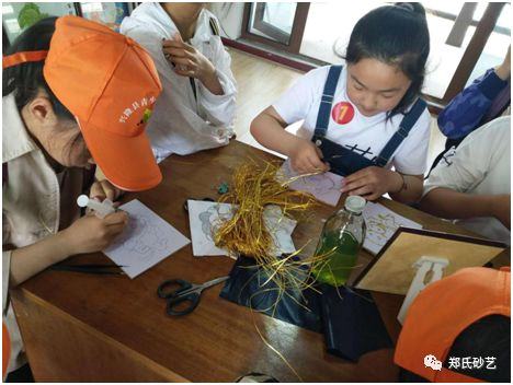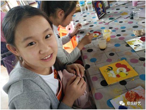 參觀后,五十余名同學(xué),自己動(dòng)手體驗(yàn)描圖、粘絲、填砂等砂畫制作過程。