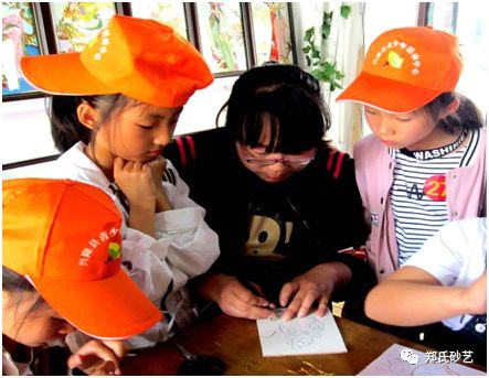 鄭氏砂藝工作人員為同學(xué)們介紹砂畫