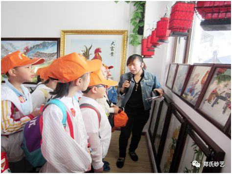 活動(dòng)中,一百多名師生參觀了體驗(yàn)館,鄭氏砂藝的工作人員為師生們詳細(xì)介紹了砂藝畫的歷史和文化發(fā)展,同時(shí)針對(duì)部分作品主題和制作過程做了注釋性介紹。