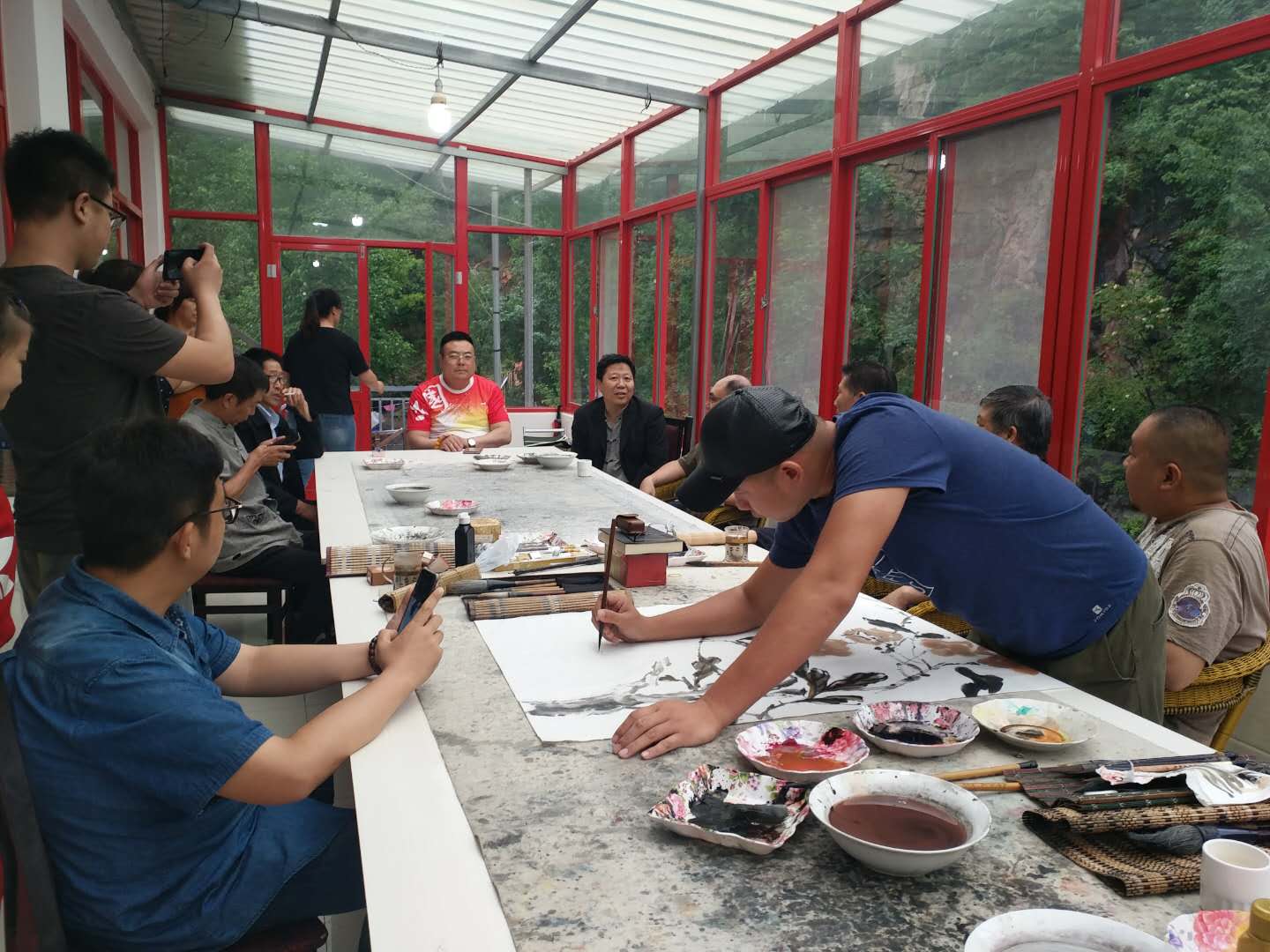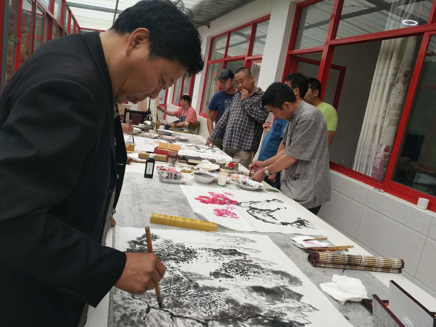 天津圣澤大通書畫院老師現(xiàn)場作畫