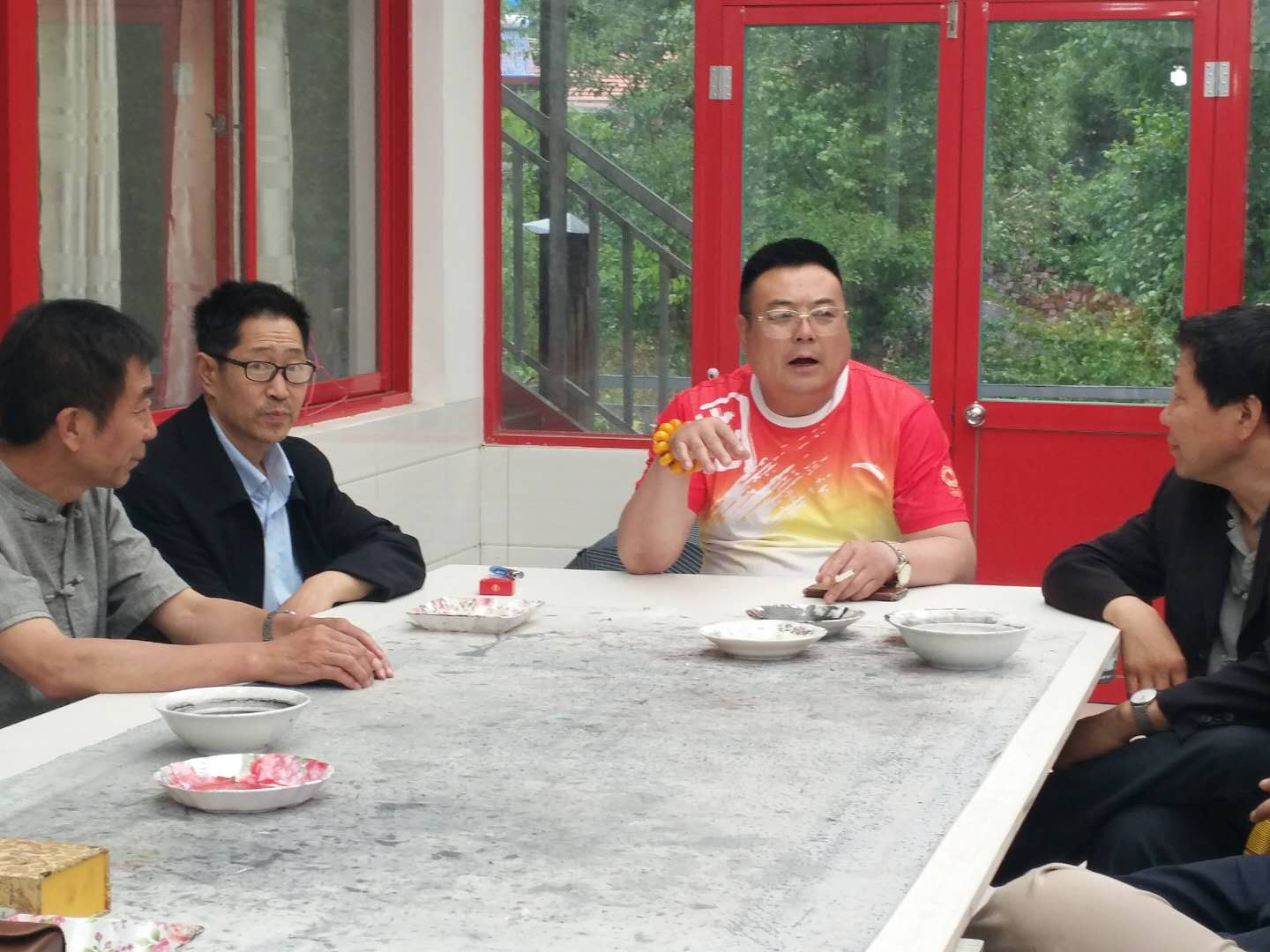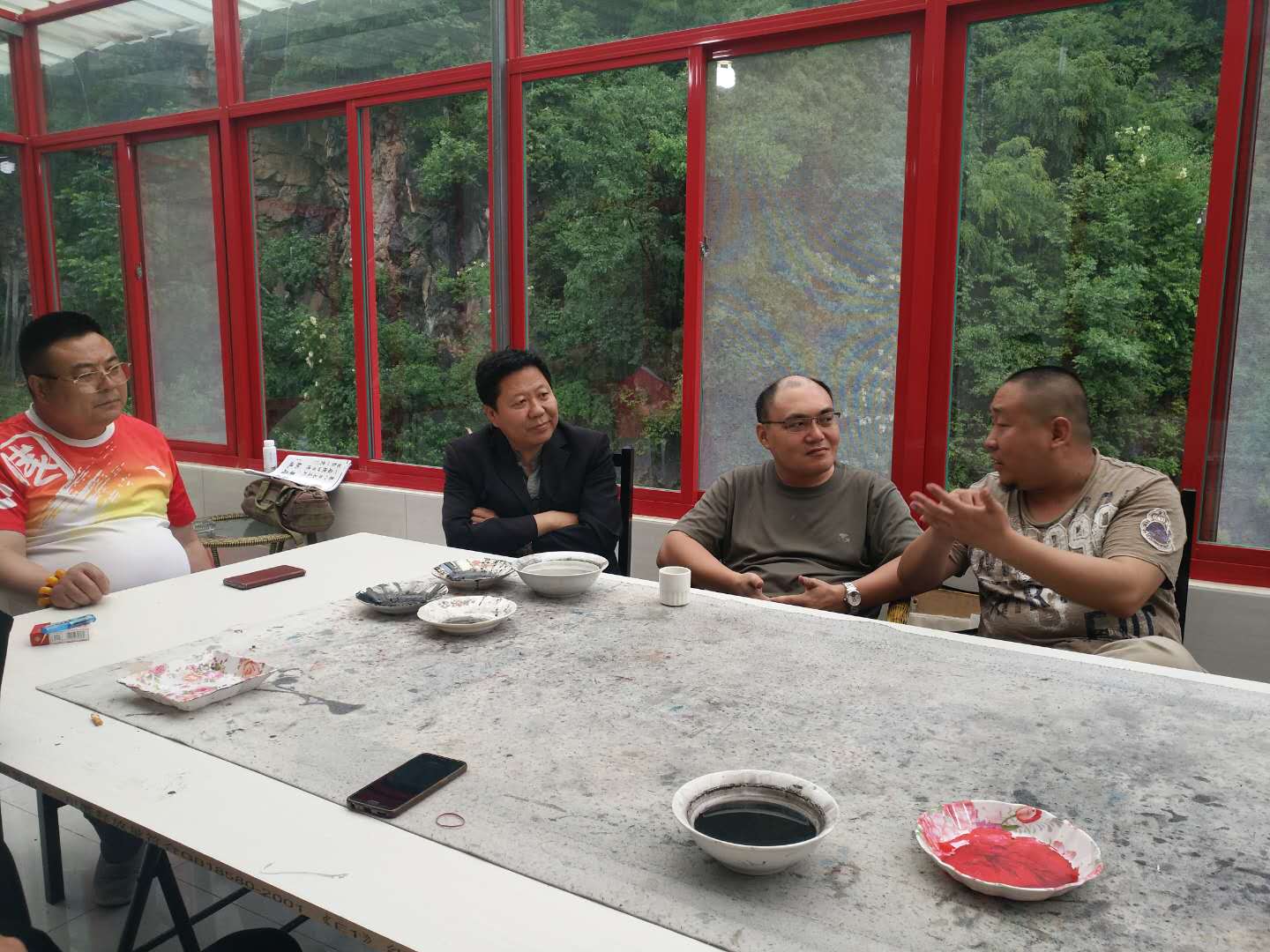 2018年6月17日,天津圣澤大通書畫院著名指畫名家王忠林、花鳥畫家尹寶華、書法家寧厚圃、書法家周征、山水畫家李學龍、書法家黃可鑫、花鳥畫家李旭等諸位老師應邀來興隆參加鄭氏砂藝工會委員會主辦的文化藝術(shù)交流活動。興隆縣鄭氏砂藝美術(shù)協(xié)會主席鄭鐵軍,興隆縣美術(shù)協(xié)會戴鐵松和韓鳳山全程參加了交流活動。