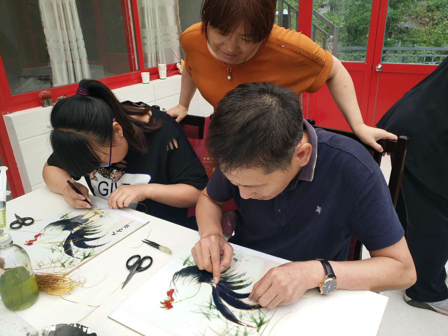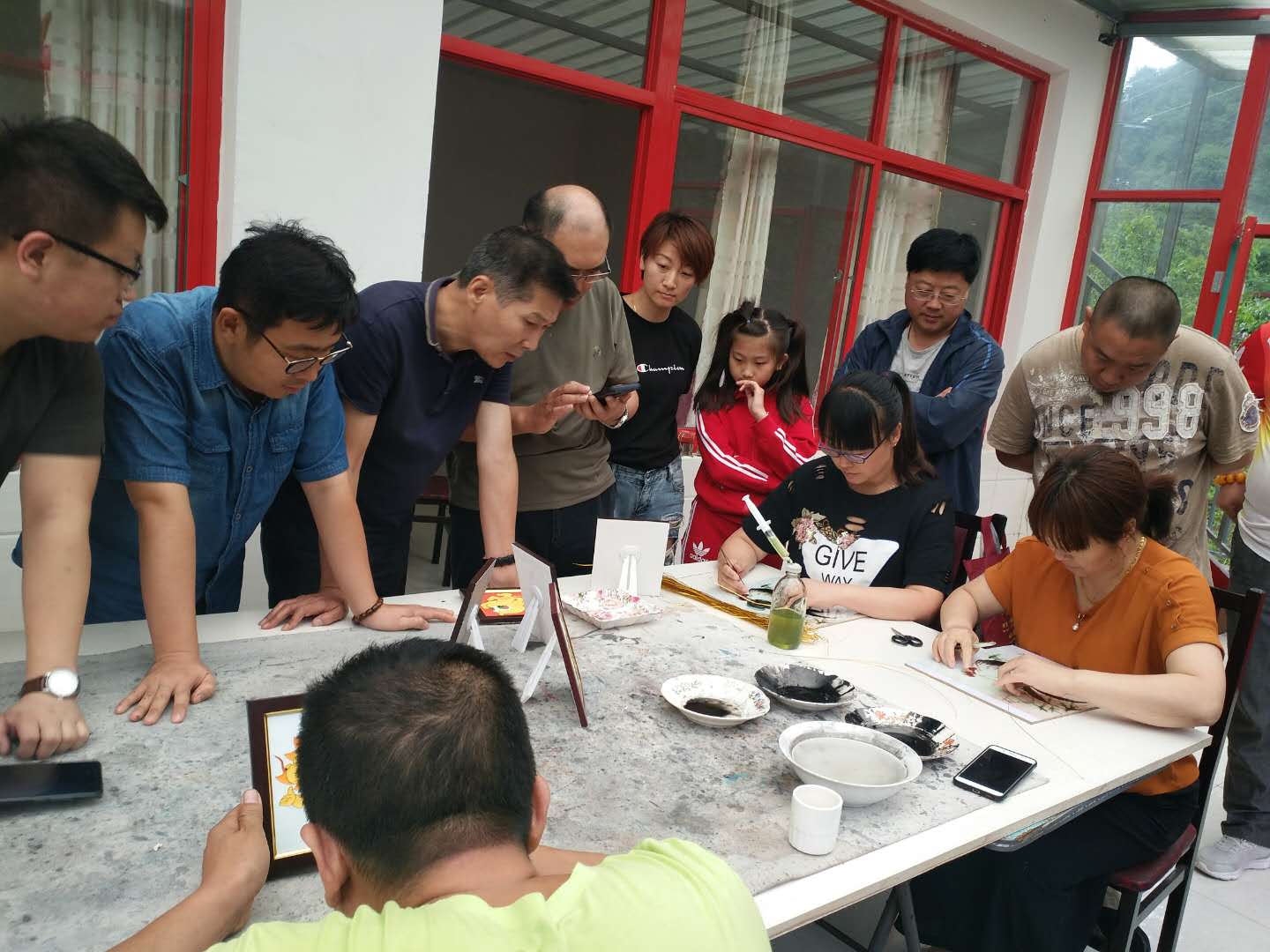 天津圣澤大通書畫院的老師們學習砂畫制作