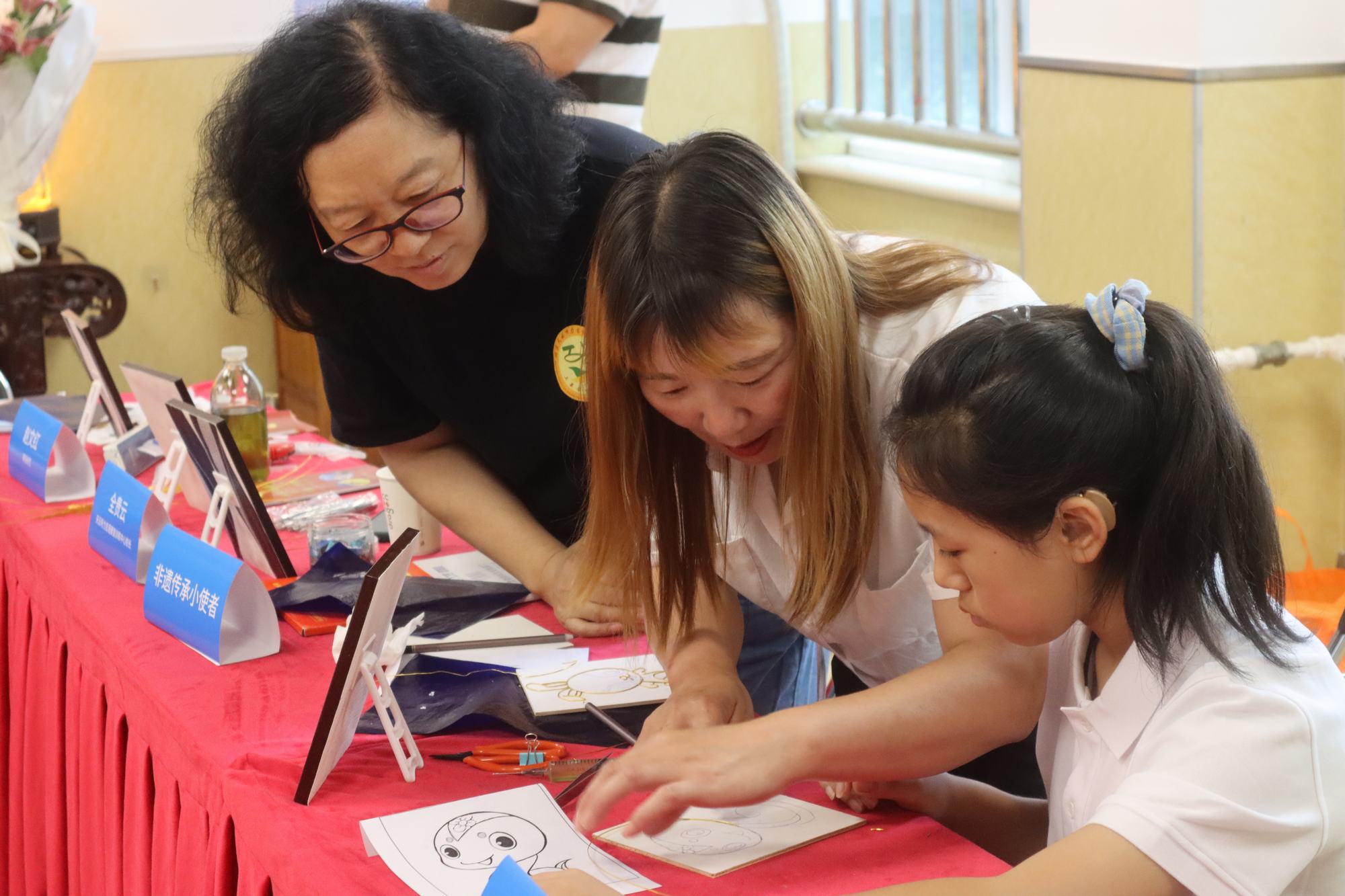 在此次“蒲公英”孤殘及留守兒童培養(yǎng)項目活動中,為更好地幫助孤殘及留守兒童學會一門維持生活的生存技能,培養(yǎng)孤殘及留守兒童生活技能培訓,提升孤殘及留守兒童生活自理能力,培養(yǎng)和建立孤殘及留守兒童生活對未來生活的自信心。鄭氏砂藝第五代傳承人、省級民間工藝美術大師鄭鐵軍率領技師團隊,并親自擔任指導老師,為學員講解砂畫工藝基礎知識、拓圖常識、粘絲技巧、點藍方法和整體畫面修復處理等步驟要領,并無償提供砂畫制作工具和原材料,供學員現(xiàn)場操作練習,并與老師互動交流,采取理論與實踐相結合的方式,達到鞏固培訓效果的目的。