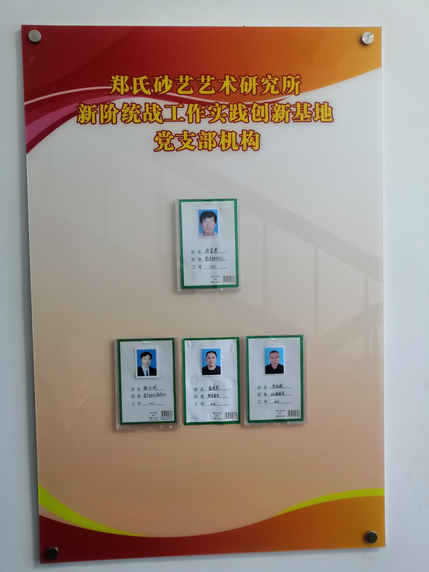 ? ? ? ? 在考察中,領(lǐng)導(dǎo)們主要參觀了創(chuàng)新基地文化展示墻和鄭氏砂藝非遺展館,聽取講解人員對(duì)創(chuàng)新基地人員組成、黨組覆蓋、創(chuàng)新發(fā)展和制度規(guī)范等情況的介紹,觀看了鄭氏砂藝金銀絲彩砂畫,王義副部長(zhǎng)對(duì)鄭氏砂藝創(chuàng)新基地近年來(lái)的積極努力和發(fā)展成果表示肯定,并鼓勵(lì)鄭氏砂藝要發(fā)揮新階統(tǒng)戰(zhàn)工作實(shí)踐創(chuàng)新基地作用,廣泛團(tuán)結(jié)社會(huì)階層人士,努力發(fā)掘培養(yǎng)更多的優(yōu)秀人才,展現(xiàn)“非遺”文化傳承特色,實(shí)現(xiàn)以點(diǎn)帶面的工作成果,為興隆縣實(shí)踐創(chuàng)新基地發(fā)展做出更大貢獻(xiàn)。