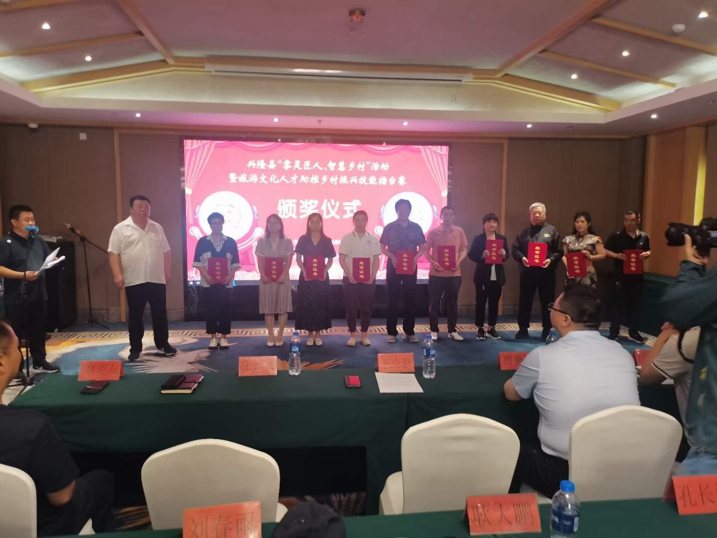 7月7日,興隆縣“霧靈匠人、智匯鄉(xiāng)村”活動暨旅游文化人才助推鄉(xiāng)村振興技能擂臺賽頒獎儀式在青松嶺鎮(zhèn)阿爾卡迪亞酒店盛大召開。興隆縣委常委、組織部長韓冰,縣人大常委會黨組副書記、總工會黨組書記、主席王立群,縣旅游和文化廣電局黨組書記、局長莊云飛,縣委組織部部務(wù)會成員、公務(wù)員局局長賈勇澤,縣總工會二級主任科員劉克友,旅游和文化廣電局副局長馬建慧等領(lǐng)導(dǎo)和獲獎藝術(shù)家們出席了頒獎儀式。