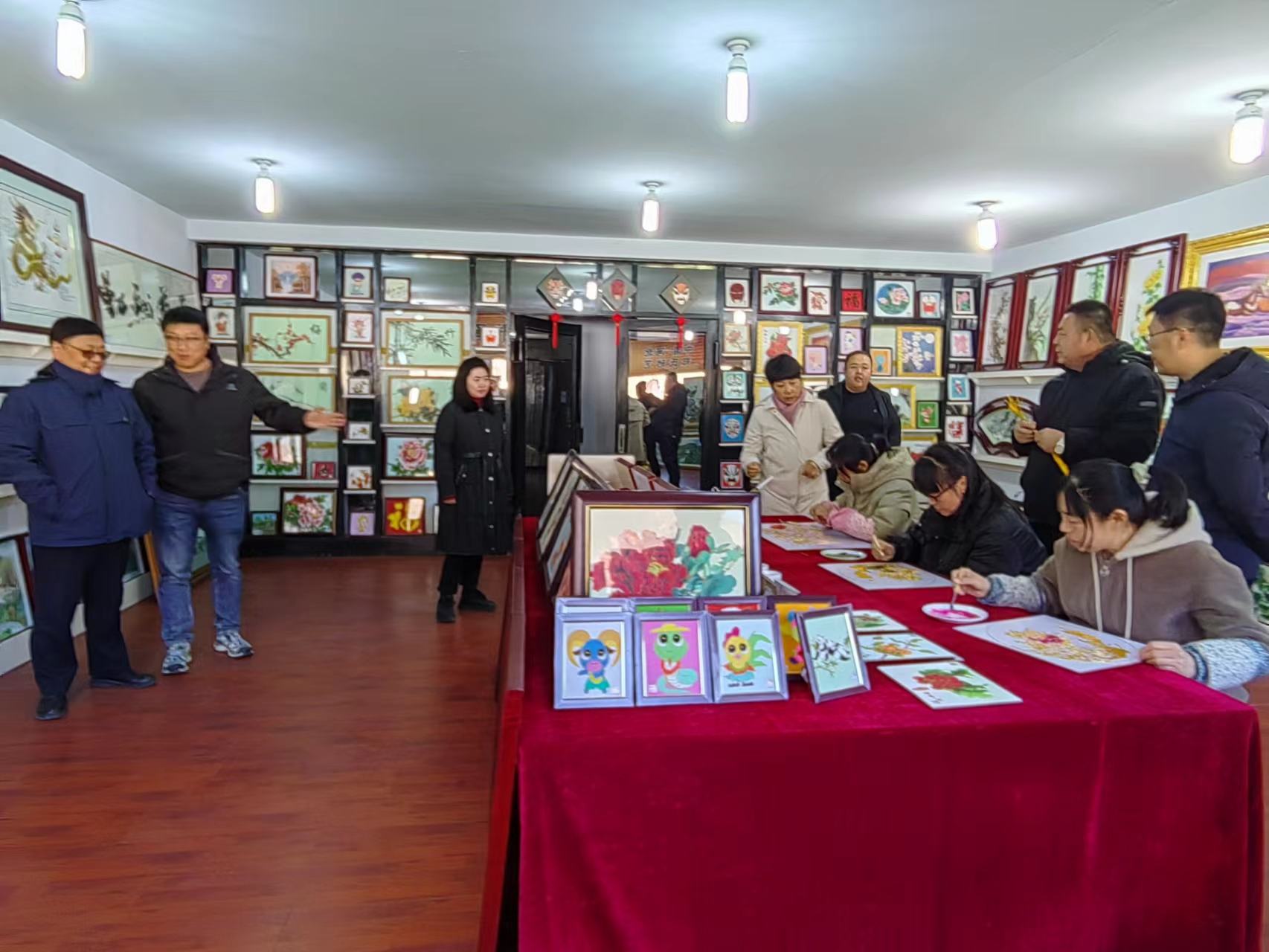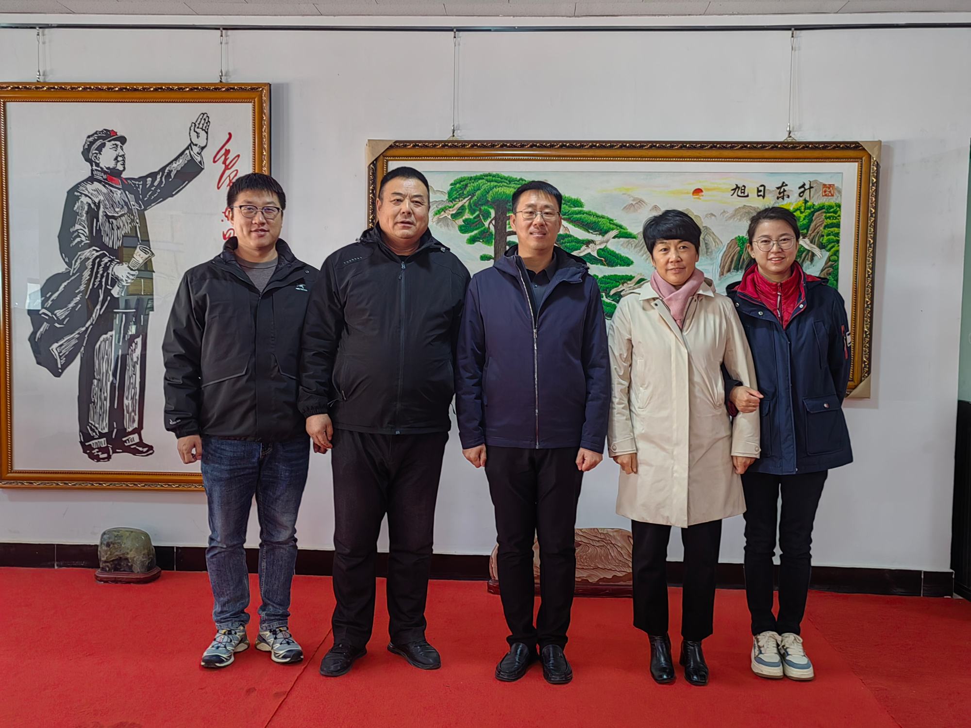參觀結(jié)束后領(lǐng)導(dǎo)們與鄭鐵軍董事長在展廳《旭日東升》畫作前合影留念。