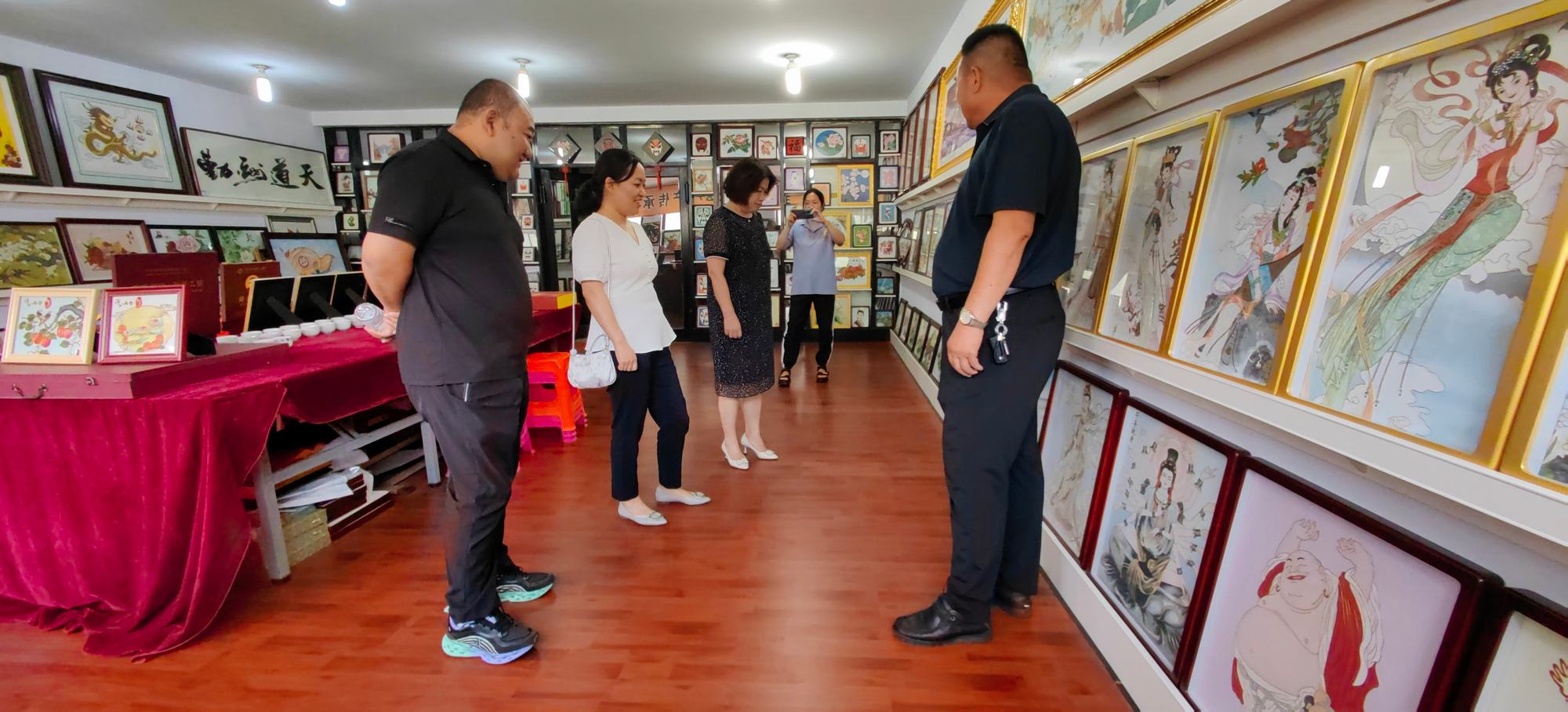 2024年7月9日,避暑山莊博物院副院長研究員蔣秀丹、承德市文物局博物館科科長楊坤、市文物局博物館管理科白彬、避暑山莊博物院文物典藏部主任副研究員沈云偉、興隆縣旅游和文化廣電局黨組成員高子營、興隆縣博物館館長閆偉生對興隆縣鄭氏砂藝非遺博物館開展調(diào)研考察,考察團在鄭氏砂藝董事長鄭鐵軍的陪同下分別參觀了鄭氏砂藝(畫)生產(chǎn)車間、企業(yè)文化展館和鄭氏砂藝非遺博物館,考察團對鄭氏砂藝(畫)技藝、鄭氏砂藝非遺博物館面積、館藏文物及配套設(shè)施進行了實地參觀考察。