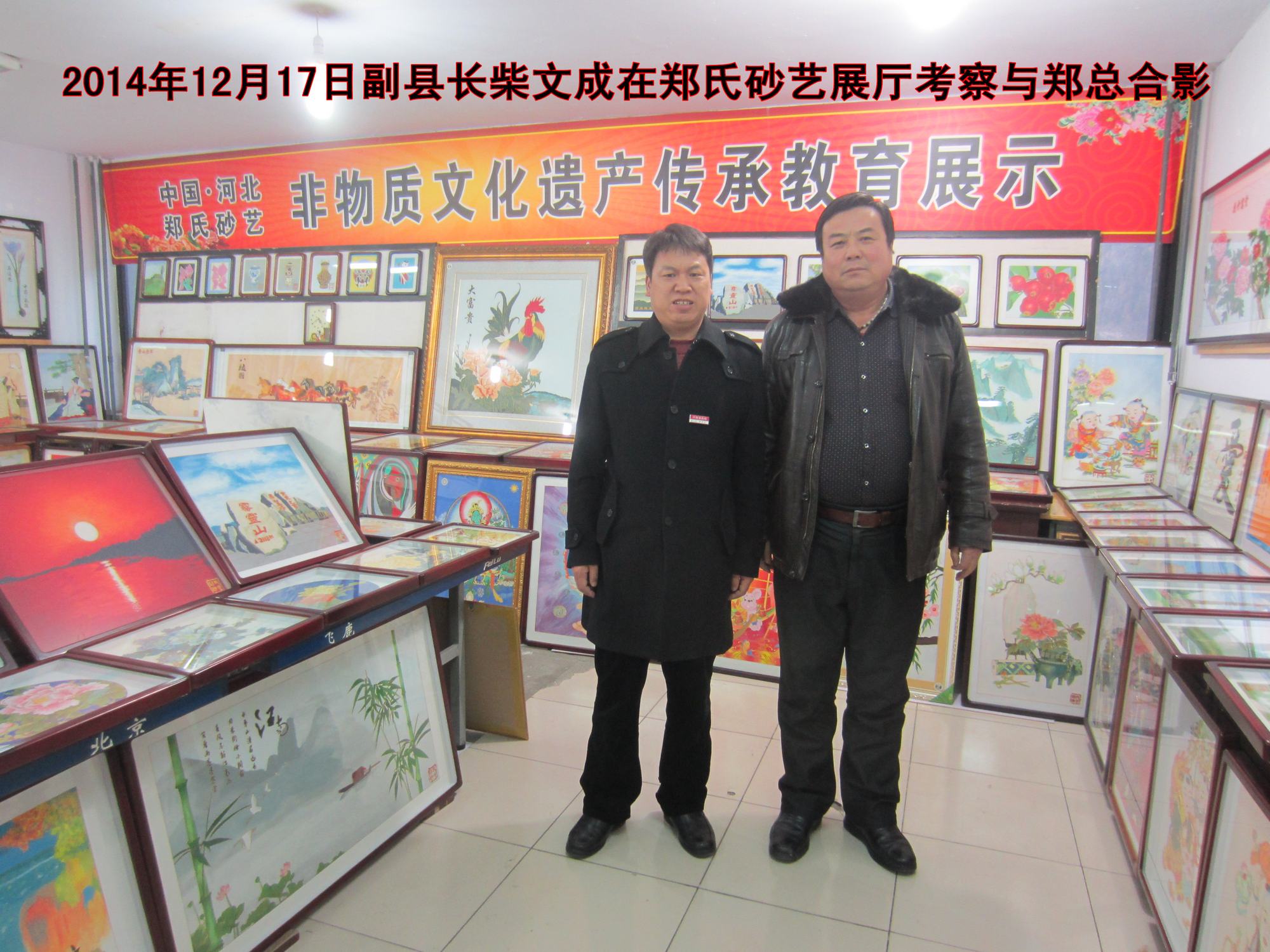 2014年12月17日,新任副縣長柴文成來到鄭氏砂藝進行工作視察。在展廳視察過程中,柴縣長邊看邊向陪同視察的鄭鐵軍總經(jīng)理詢問鄭氏砂藝的歷史淵源、選材配料、工藝流程、工藝特色、產(chǎn)品種類、銷售渠道與市場情況,并不時地提出指導性建議。他強調(diào)作為文化企業(yè),一定要狠抓產(chǎn)品質(zhì)量,減少瑕疵,多出精品。要上檔次,提品味,抓內(nèi)涵,成品牌,最后形成產(chǎn)業(yè),以推動縣域經(jīng)濟的快速發(fā)展。